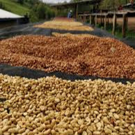 After intake, cherry is pulped, and parchment is placed in sealed polyethene bags to ferment for 38 hours. Following fermentation, parchment is washed in clean water and then placed in thin layers on raised beds to sun dry. Parchment is sifted regularly to ensure even drying. It takes approximately 60 days for parchment to dry.
